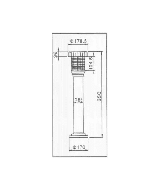 - Dimensions: 65 x 18 x 17 cm (Height x Collector Diameter x Base Diameter)