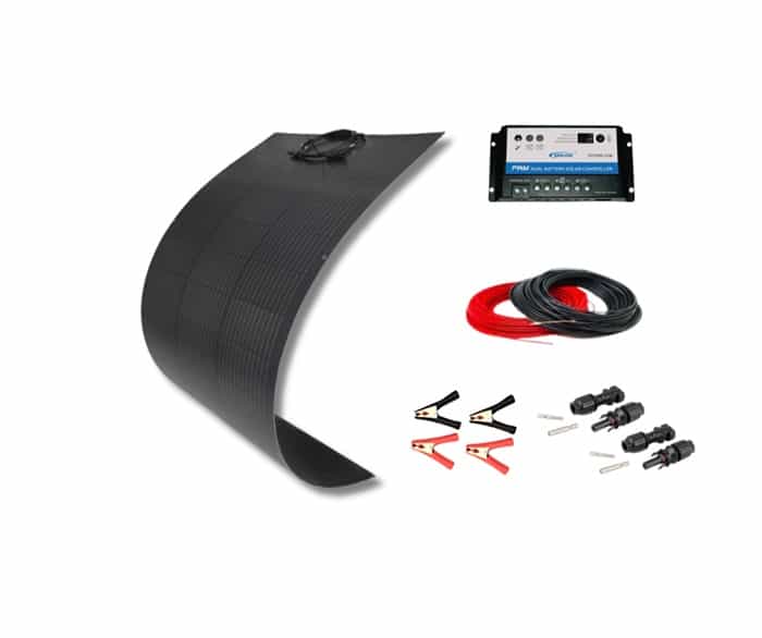 Εύκαμπτος Ηλιακός φορτιστής μπαταρίας 200W – 12V με Ρυθμιστή Φόρτισης 20Α για 2 Μπαταρίες και Κροκοδειλάκια