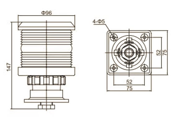 - Διαστάσεις Βάσης: 75 x 75 mm (με 4 οπές Φ5)