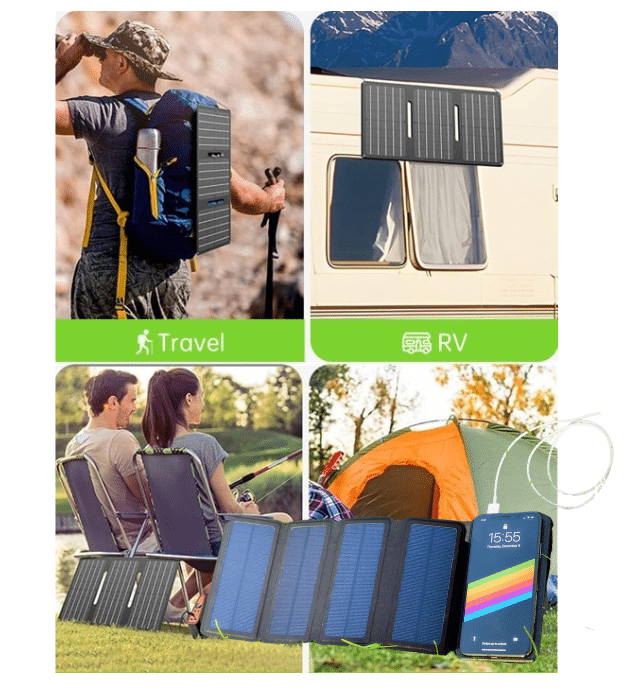 Φορτίζει κινητά τηλέφωνα, smartwatches, bluetooth ηχεία και άλλες συσκευές με ίδια τάση μπαταρίας. Για χρήση στην πεζοπορία, την ορειβασία και άλλες υπαίθριες δραστηριότητες. Παρέχει ευέλικτη φόρτιση των κινητών συσκευών στο κάμπινγκ, στην παραλία, στο βουνό και όπου αλλού υπάρχει ανάγκη για αυτονομία ρεύματος. Διαθέτει φορητή μπαταρία powerbank για να αποθηκεύετε την ενέργεια και να φορτίζετε το κινητό σας οποιαδήποτε στιγμή.