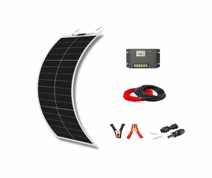Ηλιακός Φορτιστής Μπαταρίας 100W – 12V – 5,5A εύκαμπτος με Ρυθμιστή Φόρτισης 20Α και Κροκοδειλάκια