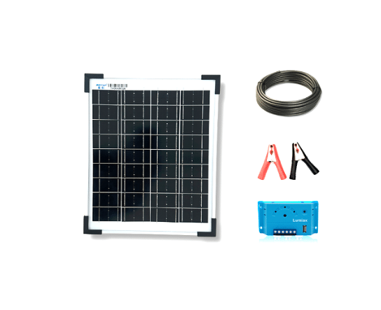 Ηλιακός Φορτιστής Μπαταρίας 10W -12V – 0,6A με καλώδιο 4μ., Ρυθμιστή Φόρτισης 5Α και Κροκοδειλάκια